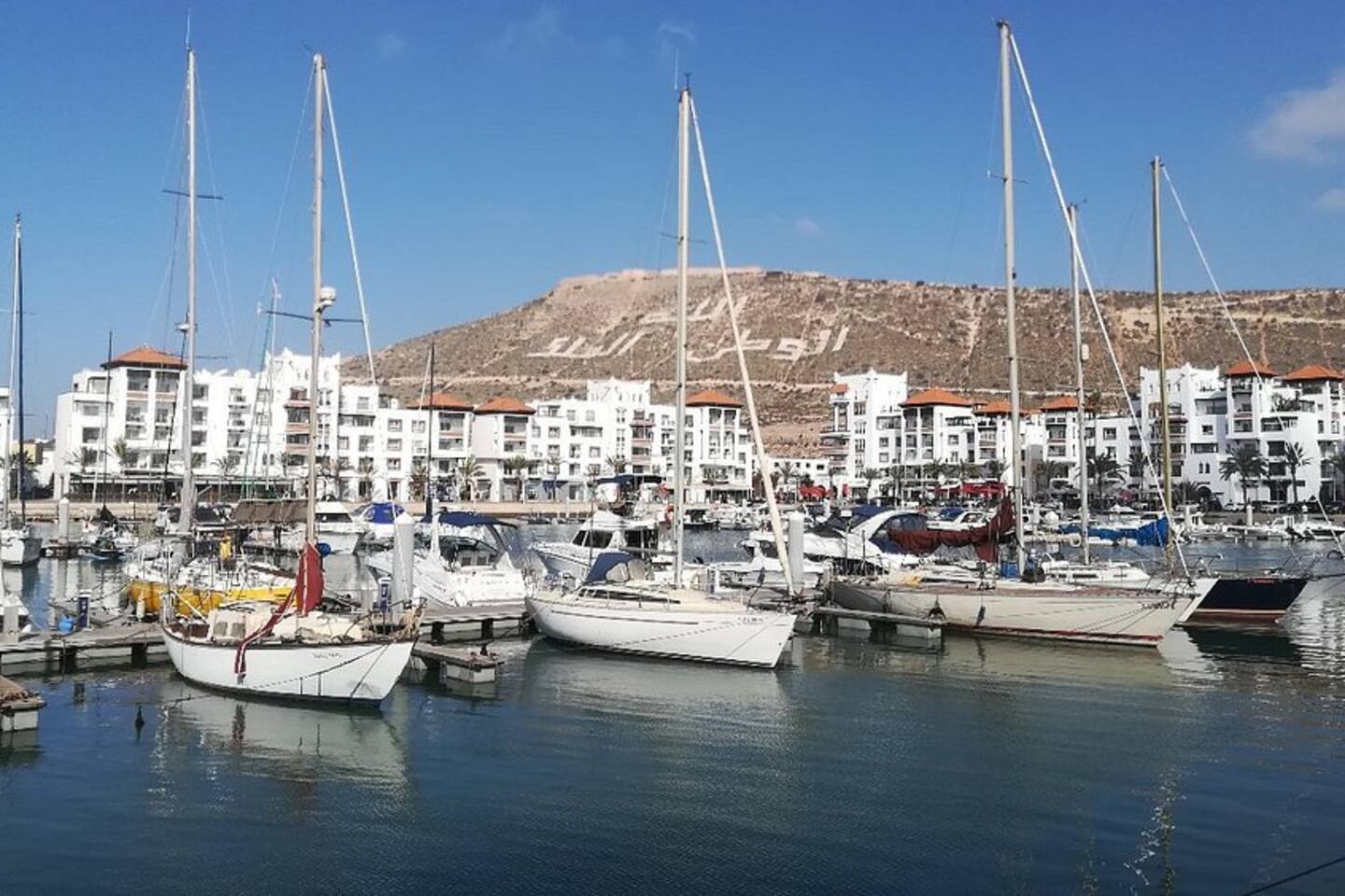 Escape to our modern 2-bedroom luxury apartment in the vibrant Agadir Marina. Perfect for families or couples, this stylish retreat comfortably sleeps 4. Enjoy stunning mountain views from the balcony, a fully equipped kitchen, and direct beach access. With pools, shops, and restaurants just steps away, it's the ideal base for your Moroccan getaway. Free secure parking included.